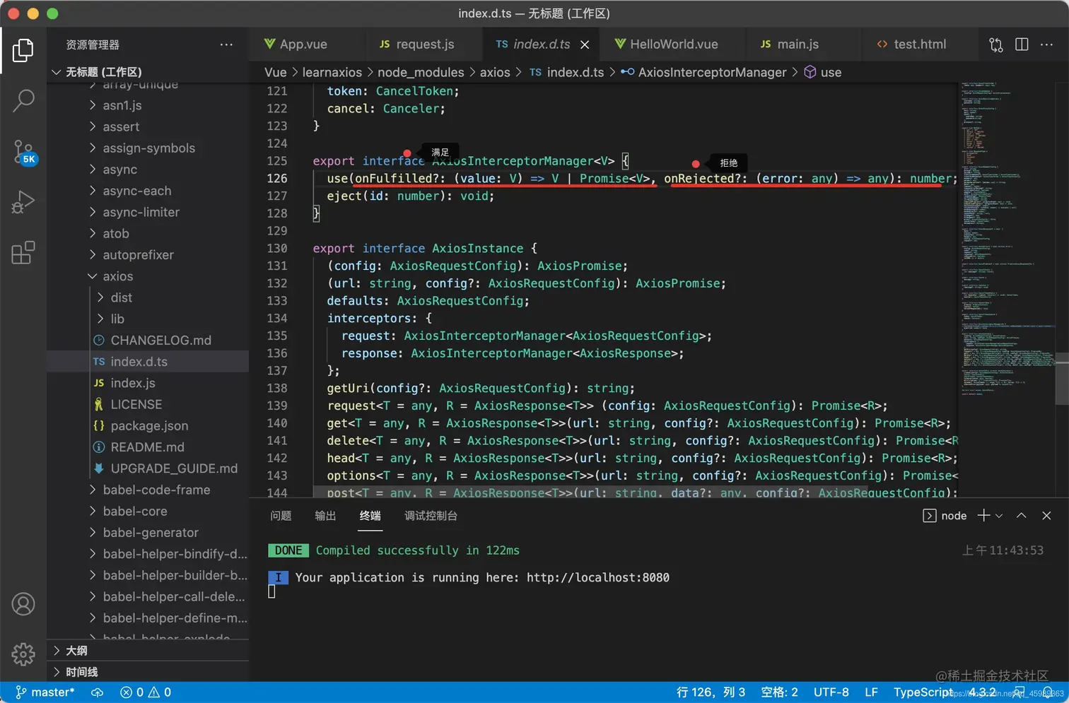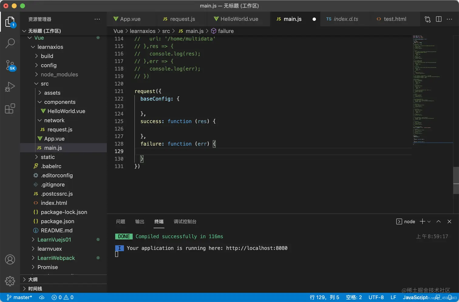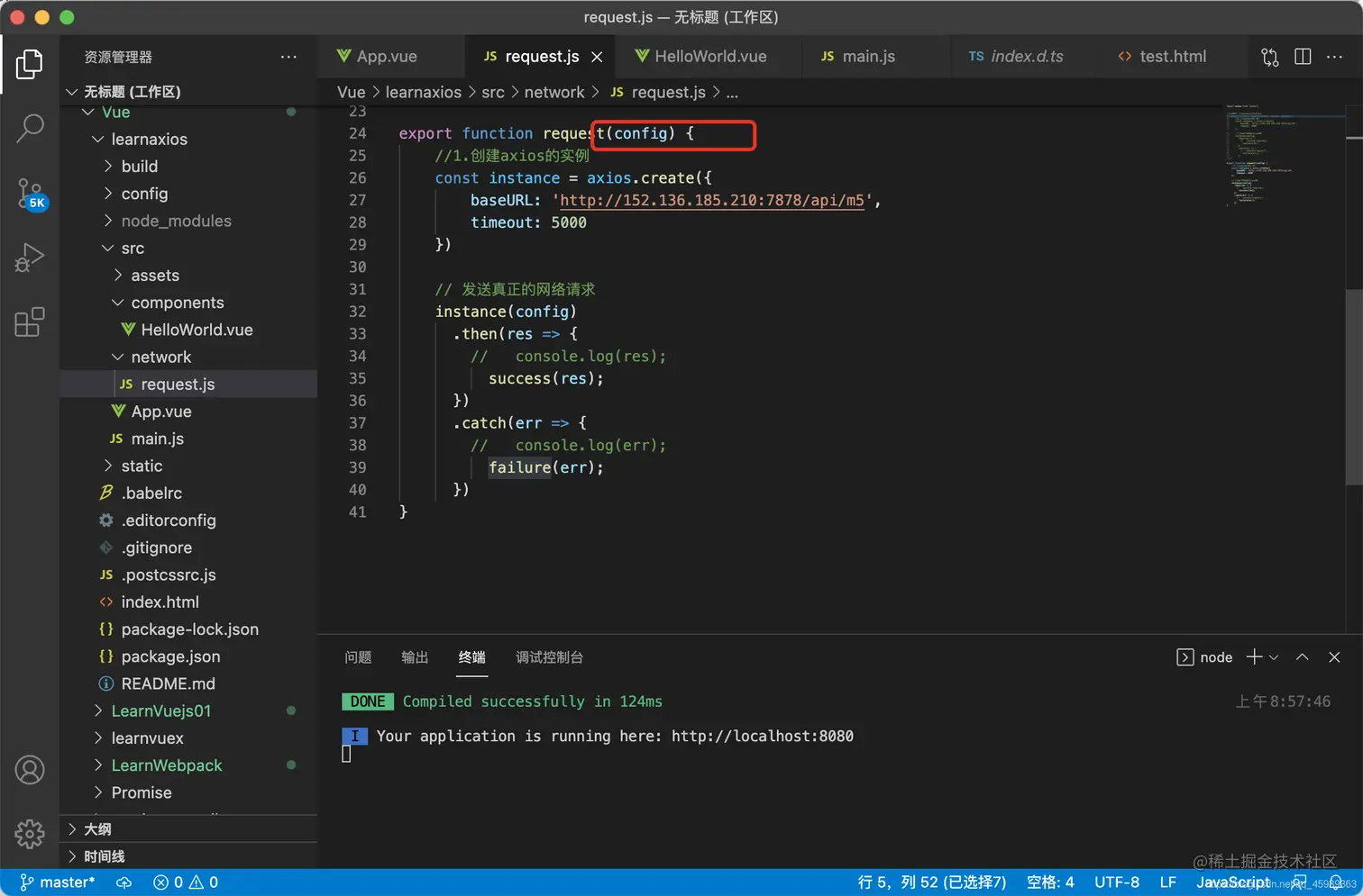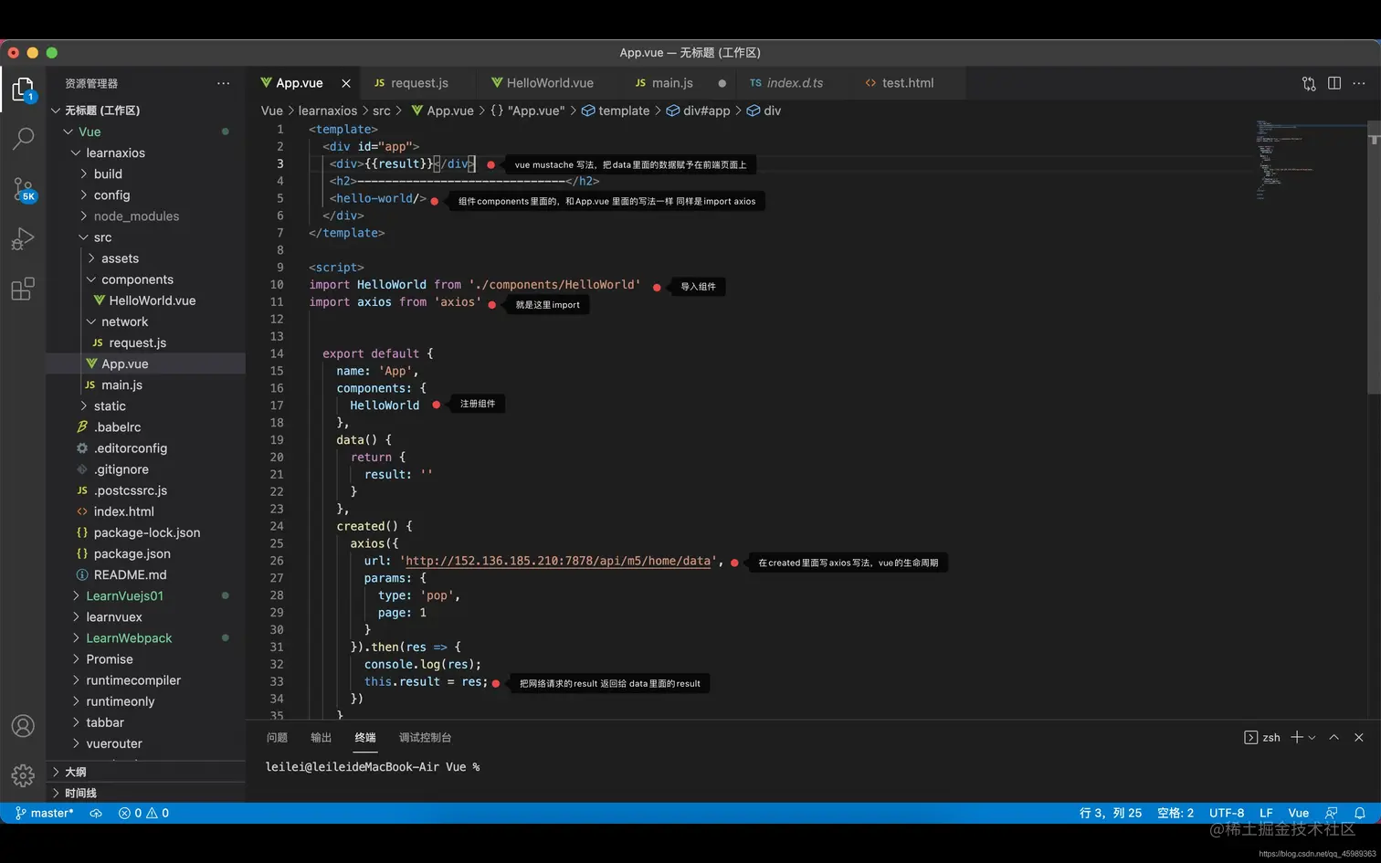 3.项目终端运行 npm install axios --save 安装axios