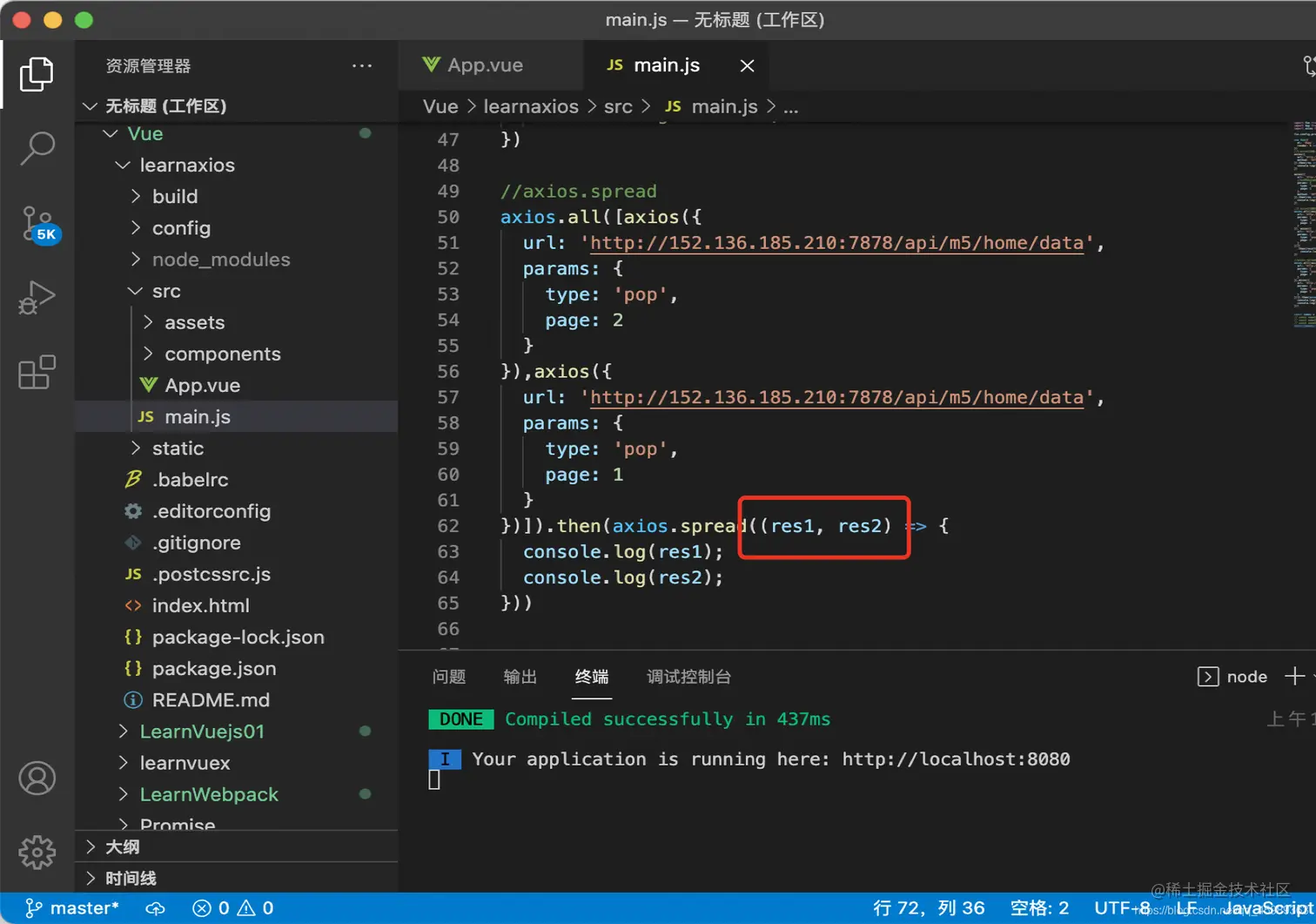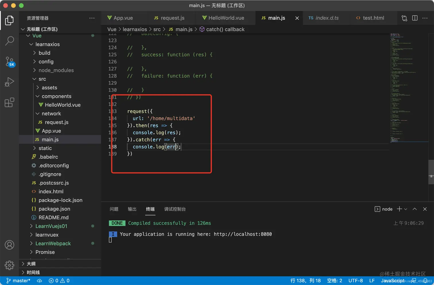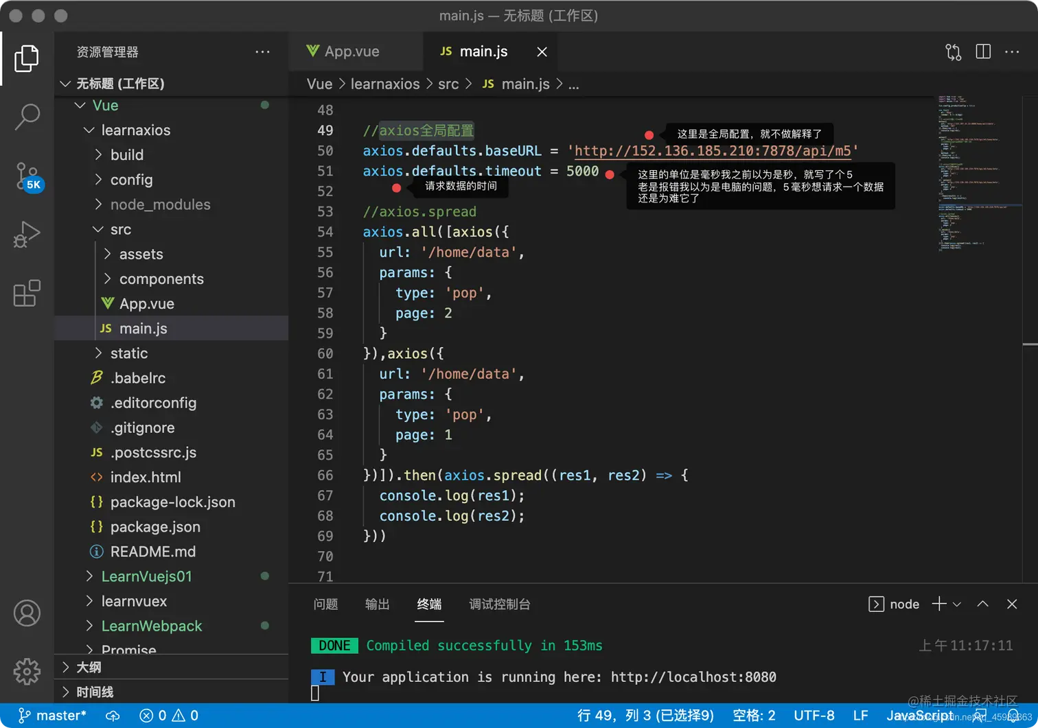 4.在main.js里面导入axios import axios from 'axios'