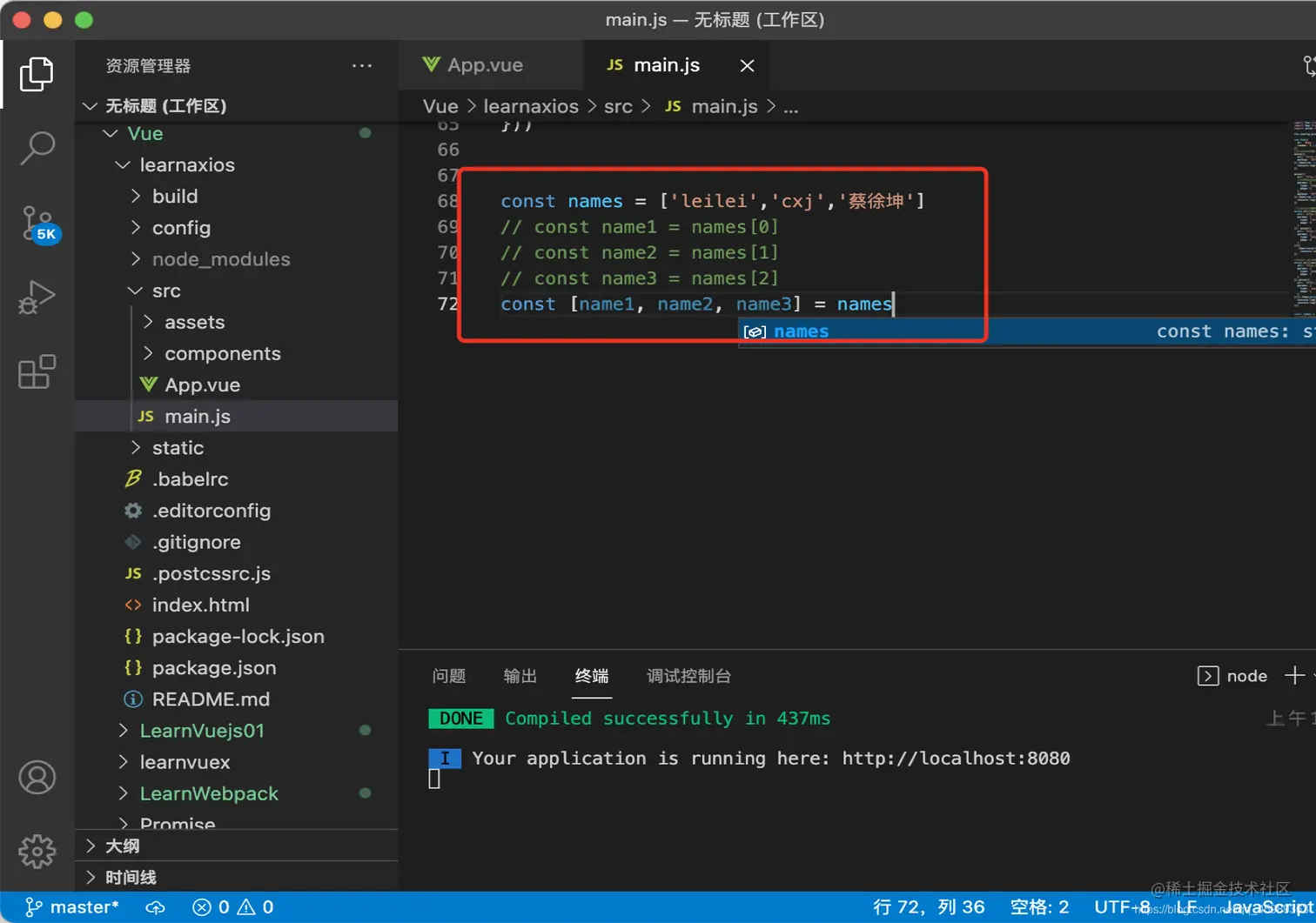 2.这里讲一下数组的JavaScript数组的解构