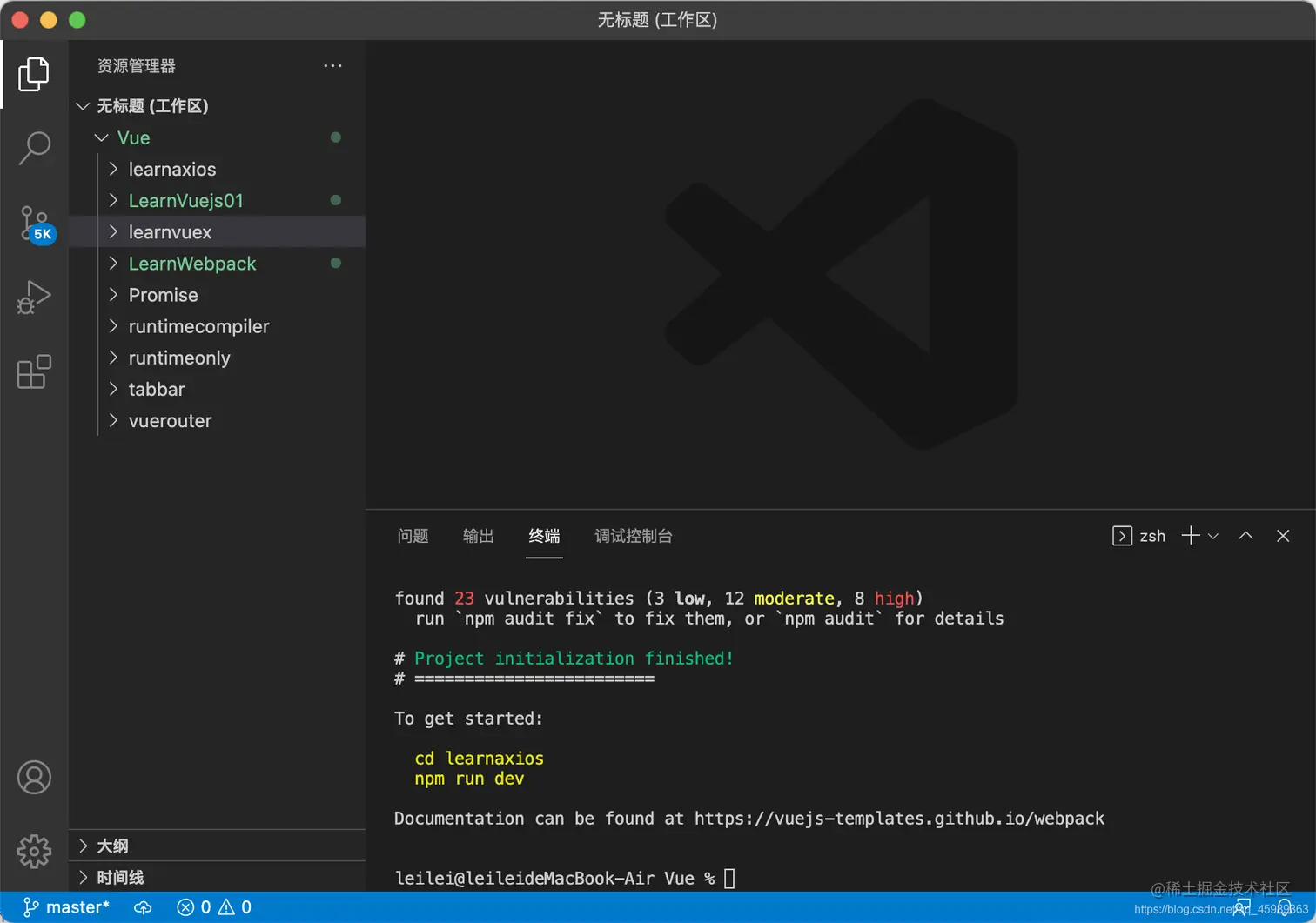 1.首先安装项目终端输入 vue init webpack learnaxios