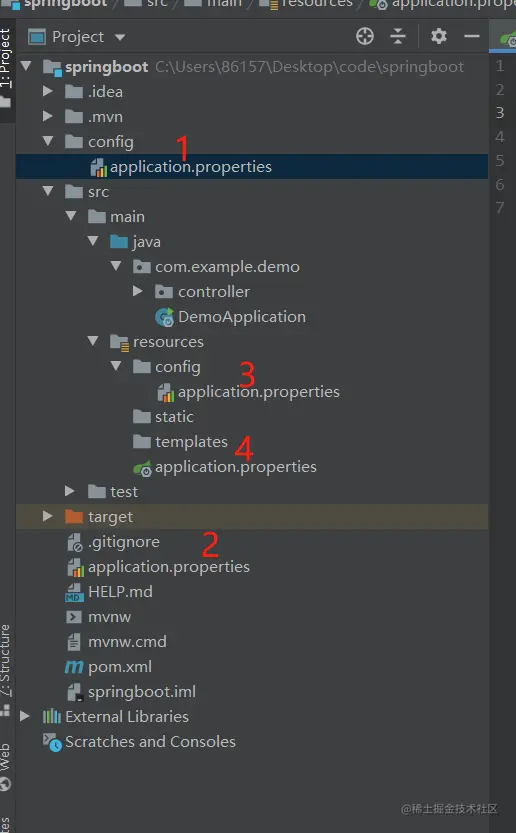 1、在 Spring Boot 中,一共有 4 个地方可以存放该配置文件,并按照如下优先级依次降低,如下: