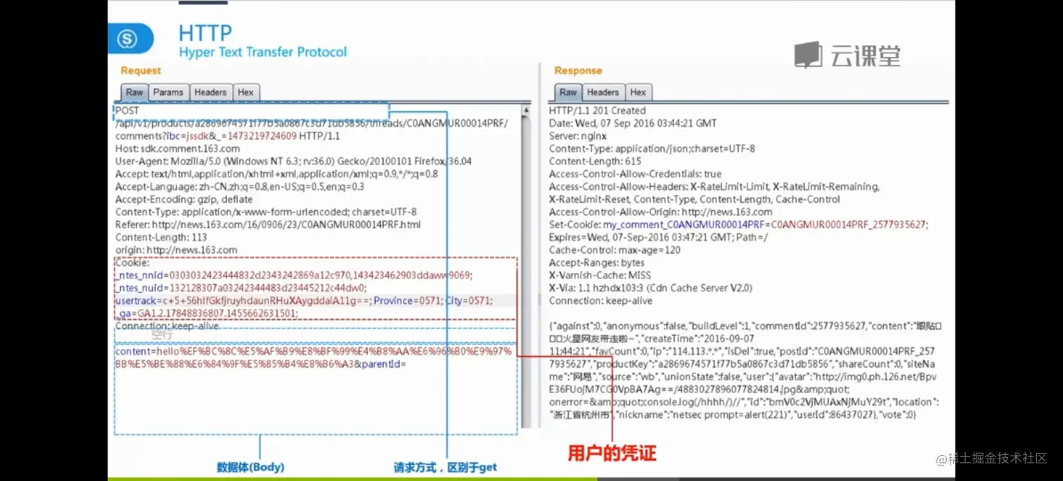 相较于上面,多了一个Cookie字段,就是前面提到的用户凭证,相当于告诉服务器,是我发的这个帖子。
