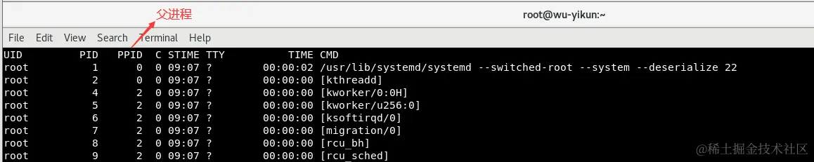 ⭐若要查看进程对应的父进程,则需要搭配参数 -ef 使用: