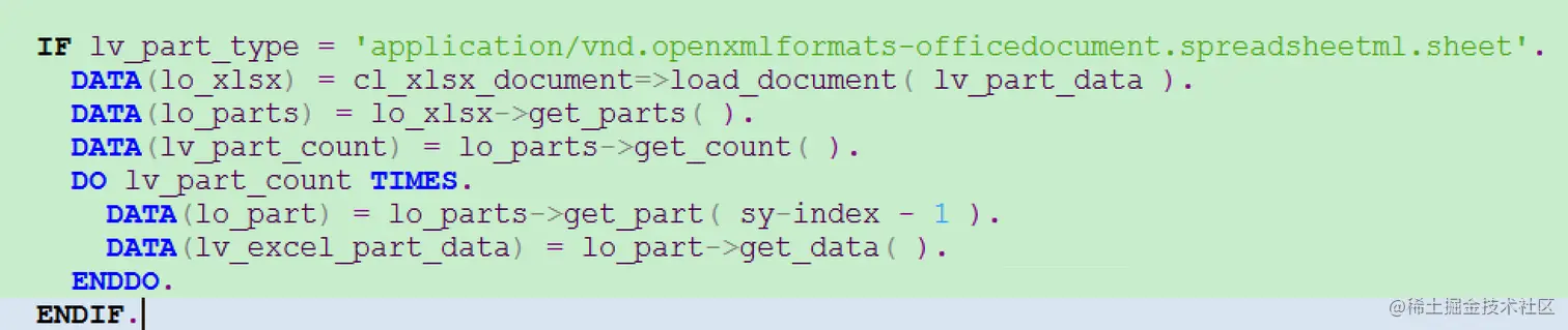 而对于上图绿色高亮的 PDF 的二进制数据,CL_HTTP_REQUEST 提供了相应方法来提取。关键代码如下图所示: