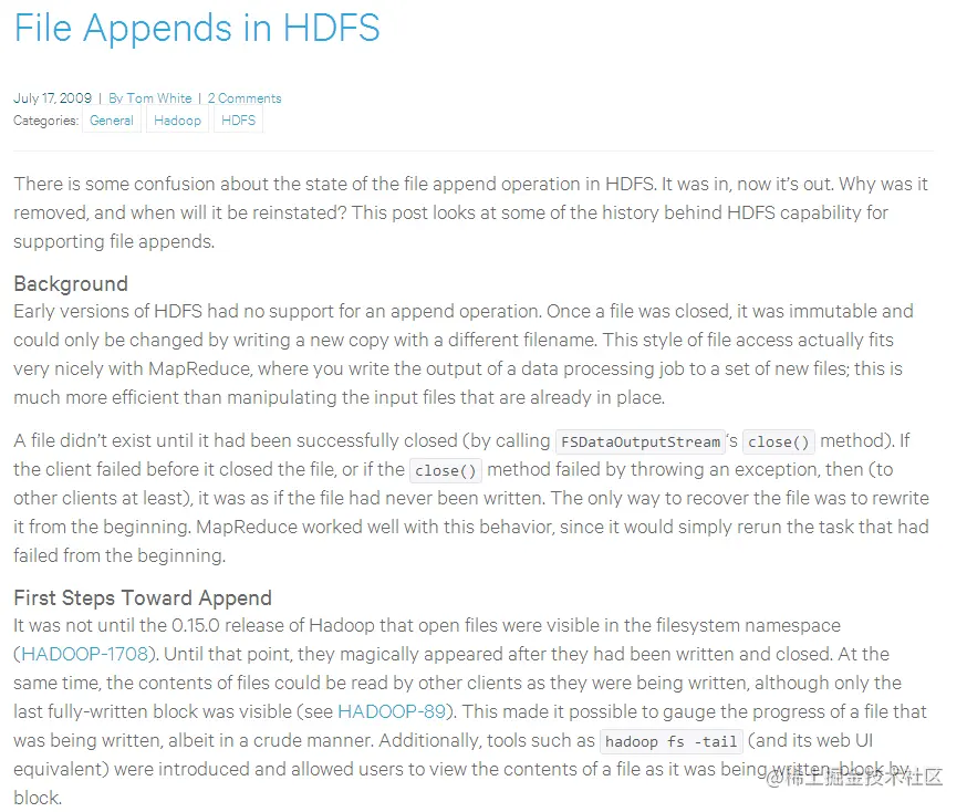 HDFS 不是不允许追加内容么?没错,请看背景故事: