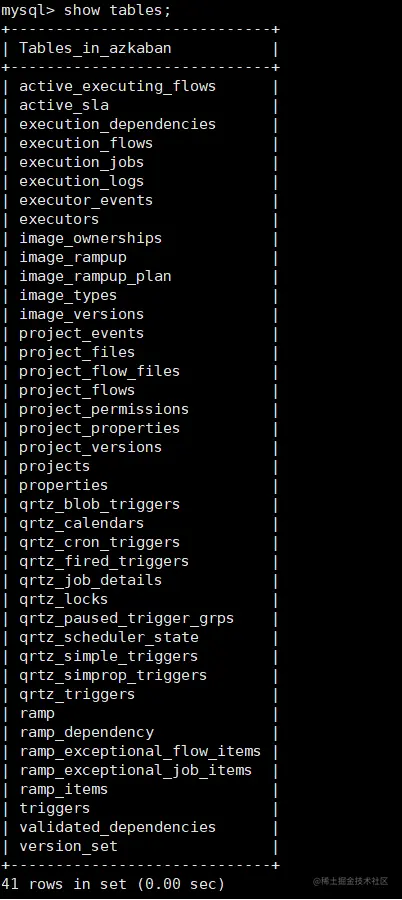 mysql>source /app/src/azkaban/azkaban-db-0.1.0-SNAPSHOT/create-all-sql-0.1.0-SNAPSHOT.sql