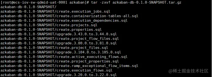 [root@ecs-iov-sw-qdmid-uat-0001 ~]# tar -zxvf azkaban-db-0.1.0-SNAPSHOT.tar.gz