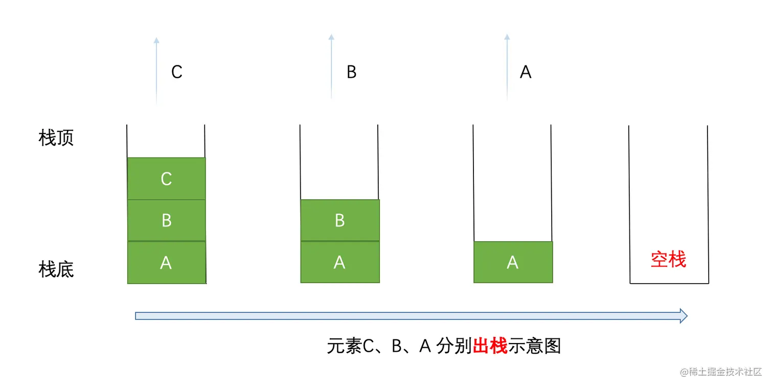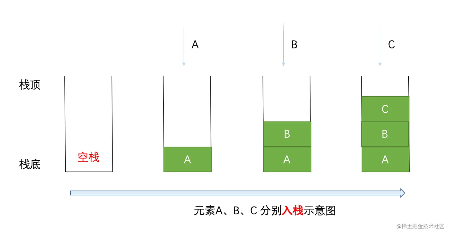 为了大家更好的形象了解我们通过示意图来看一下栈的入栈和出栈操作
