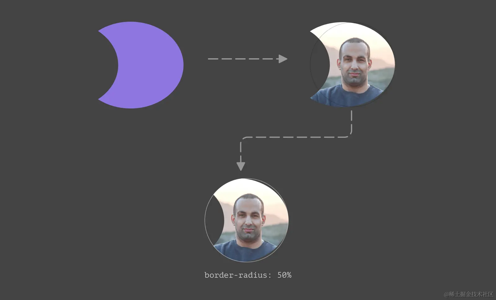 考虑到这一点,最好是使用 CSS 变量处理<circle> 的 cx,cy和r的值。下面是用于处理头像和蒙版大小的 CSS:
