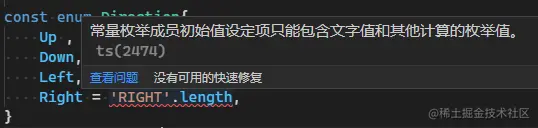 注意:只有常量值可以使用常量枚举,如果包含了计算值会报错