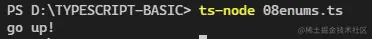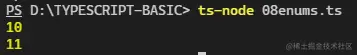 我们在数字枚举中使用ts-node命令掉用程序需要先安装ts-node, 安装它的原因是typescript自带的tsc命令并不能直接运行typescript代码。但值得注意的是 ts-node 并不等于 typescript 的 Node.js ,仅仅封装了 typescript 的编译过程,提供直接运行typescript代码的能力。