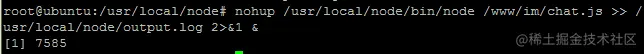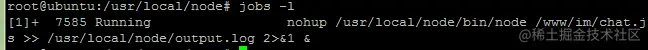 nohup /usr/local/node/bin/node /www/im/chat.js >> /usr/local/node/output.log 2>&1 &