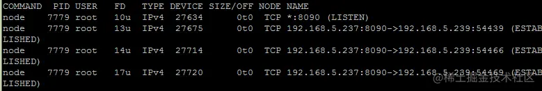查看到进程id之后,使用netstat命令查看其占用的端口