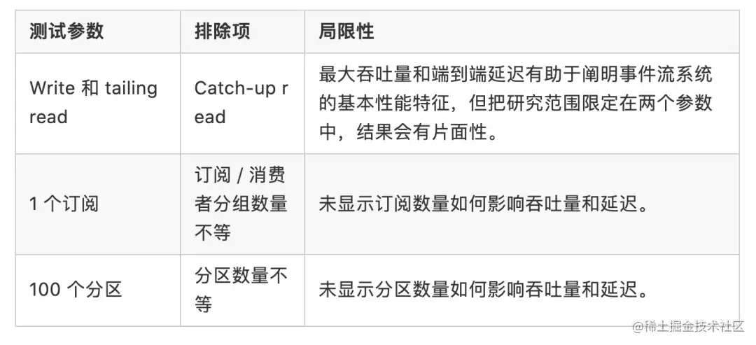 其二,Confluent 的性能测试基于一组狭窄的测试参数。这限制了结果的适用性,也无法为读者提供不同工作负载和实际应用场景相匹配的准确结果。