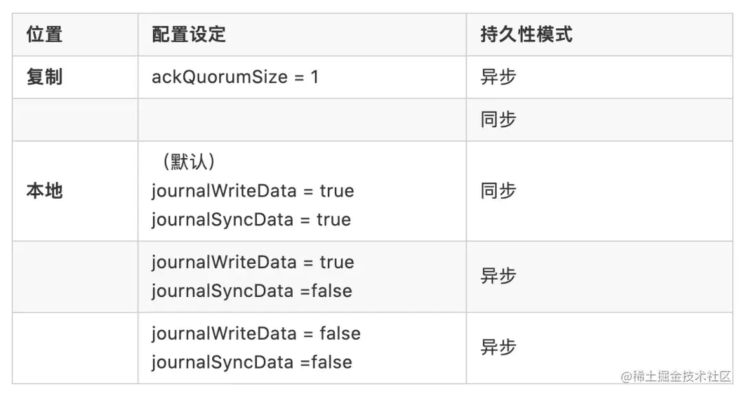 - 异步持久性:在数据成功 fsync 到本地磁盘(本地持久性)或复制到多个位置(复制持久性)前,系统会向对等系统 / 客户端返回写入响应。