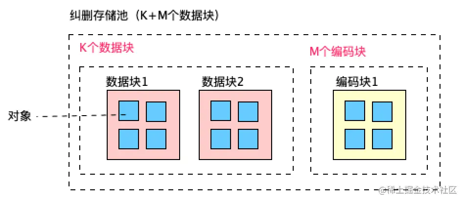至少需要1个数据块和一个编码块才能恢复对象完整数据