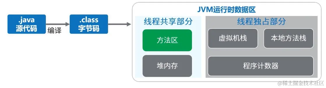JVM用来储存加载的类信息、常量、静态变量、编译后的代码等数据。