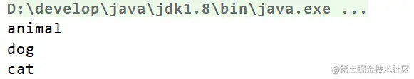 在上面代码中,客户端将Execute对象做为参数传递给Animal类型的变量调用的方法,这里完成第一次分派,这里是方法重写,所以是动态分派,也就是执行实际类型中的方法,同时也将自己this作为参数传递进去,这里就完成了第二次分派,这里的Execute类中有多个重载的方法,而传递进行的是this,就是具体的实际类型的对象。