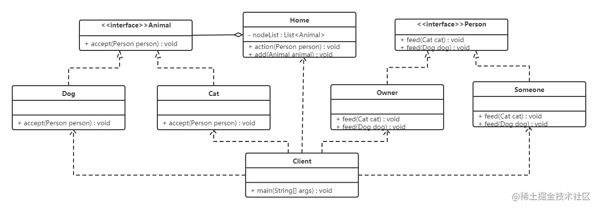 创建不同的具体访问者角色(主人和其他人),都需要实现 Person接口