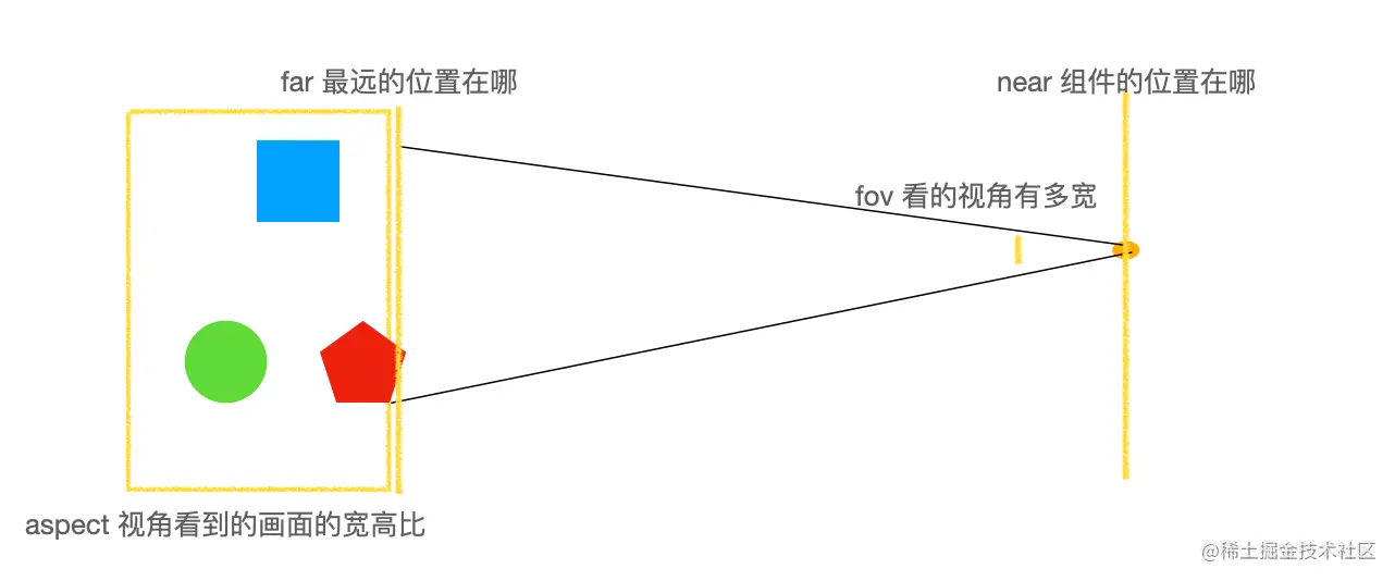 这就是为什么 PerspectCamera 有 near、far、fov、aspect 这四个参数。