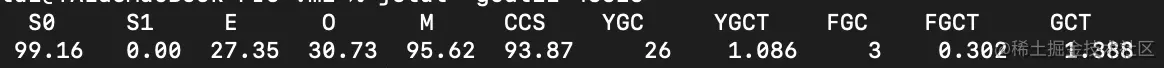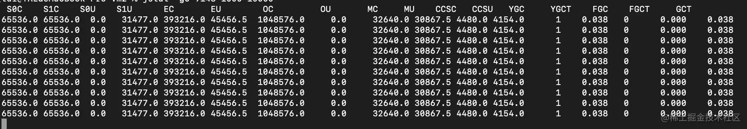 表示观察8620这个进程,每隔1s打印一次gc情况,连续打印10000次