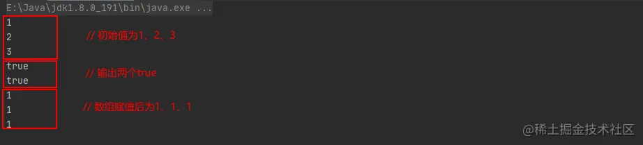 如下三个为什么前两个为true,最后一个为false呢?