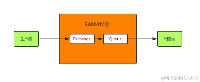 message消息到达RabbitMQ后先是到exchange交换机中,然后路由给queue队列,最后发送给消费端。