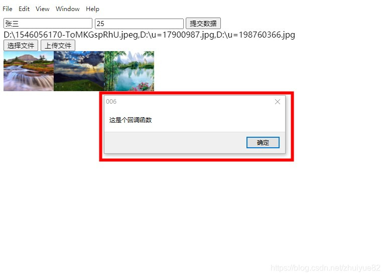 点击确定按钮后,运行回调函数,由于我这里只写了个弹出框,所以就只弹出一个对话框,如下
