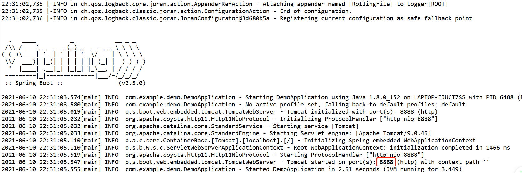 找到DemoApplication.java ,直接运行main,出现下图即表示成功
