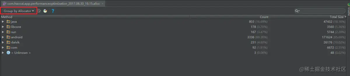 Group by Method:用方法来分类我们的内存分配,默认会以Group by Method来组织