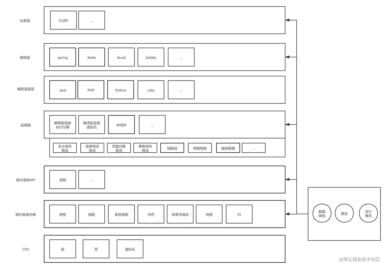 我们经常说学底层,那底层到底指哪些呢?我个人的观点:汇编、C语言、C++、Linux应用层、Linux内核层、数据结构、基础算法。