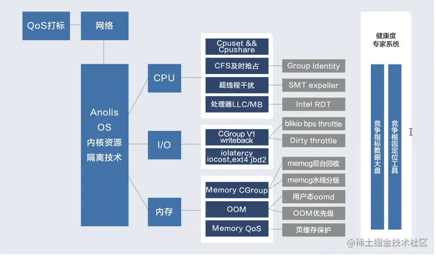 内核资源隔离技术主要涉及内核中的调度、内存和 IO 这三大子系统,这些技术基于 Linux Cgroup V1 提供资源的基本隔离划分以及 QoS 保障,适用于容器云场景,同时也是大规模化混合部署方案所强依赖的关键技术。
