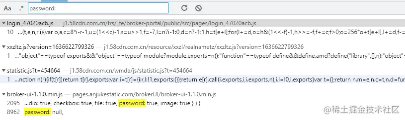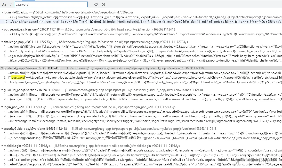通过搜索关键词password和password:,发现并不好定位,如图: