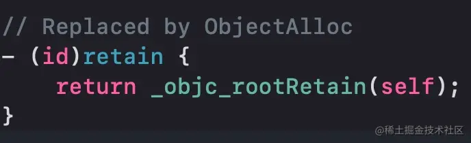 这里我们跳过中间的一个私有方法,直接来看最终的rootRetain()函数。