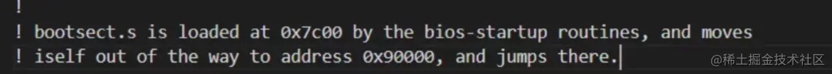 PC机的BIOS把bootsect的一个固定地址拿到了内存中某个固定地址(0x90000),