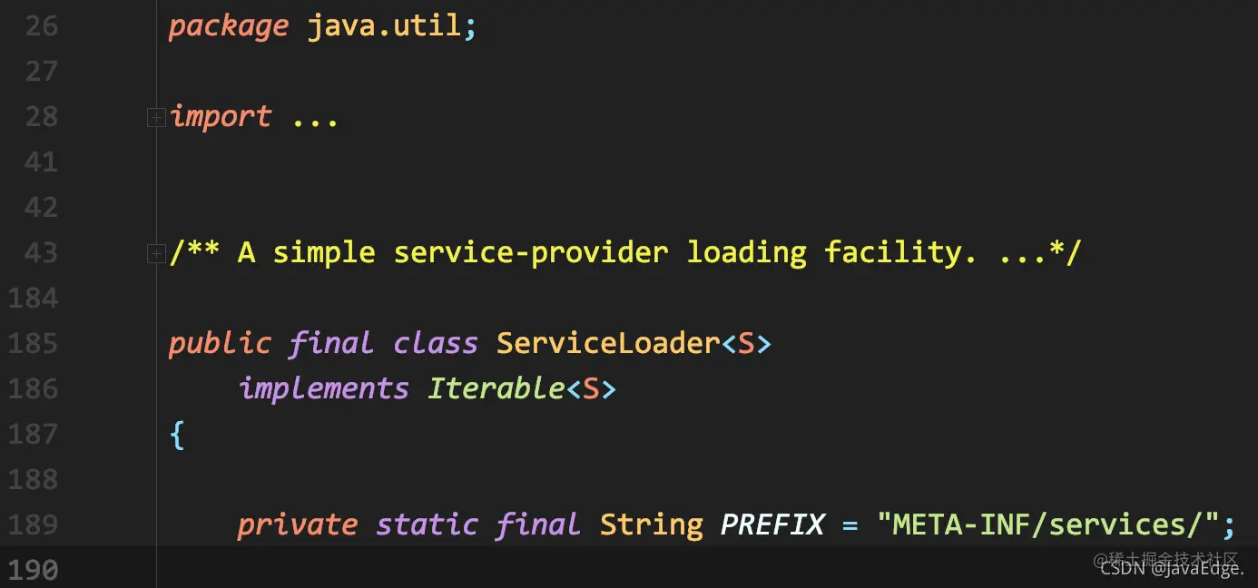 LazyIterator#hasNextService 读取 META-INF/services 下的配置文件,获得所有能被实例化的类的名称,并完成 SPI 配置文件的解析