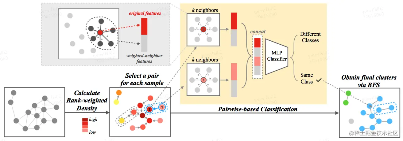 摘要:本文提出一种基于配对分类(Pairwise Classification)的快速人脸聚类方法,可以解决大规模数据推理对内存的依赖和效率的问题,同时,为降低聚类任务离群点所导致的簇中心估计偏移的影响,提出一种基于位次加权的样本密度值(Rank-Weighted Density)计算方式,用于指导预测阶段配对的选择,可运用基于k近邻中位次排序的单调递减函数给样本间相似度进行加权,更准确地估计簇中心,进一步提高了聚类的精度。在MS1M、IJB-B等公开数据集上,均取得了SOTA的性能。