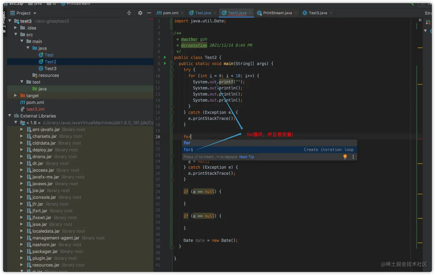 - 输入fori,会智能提示