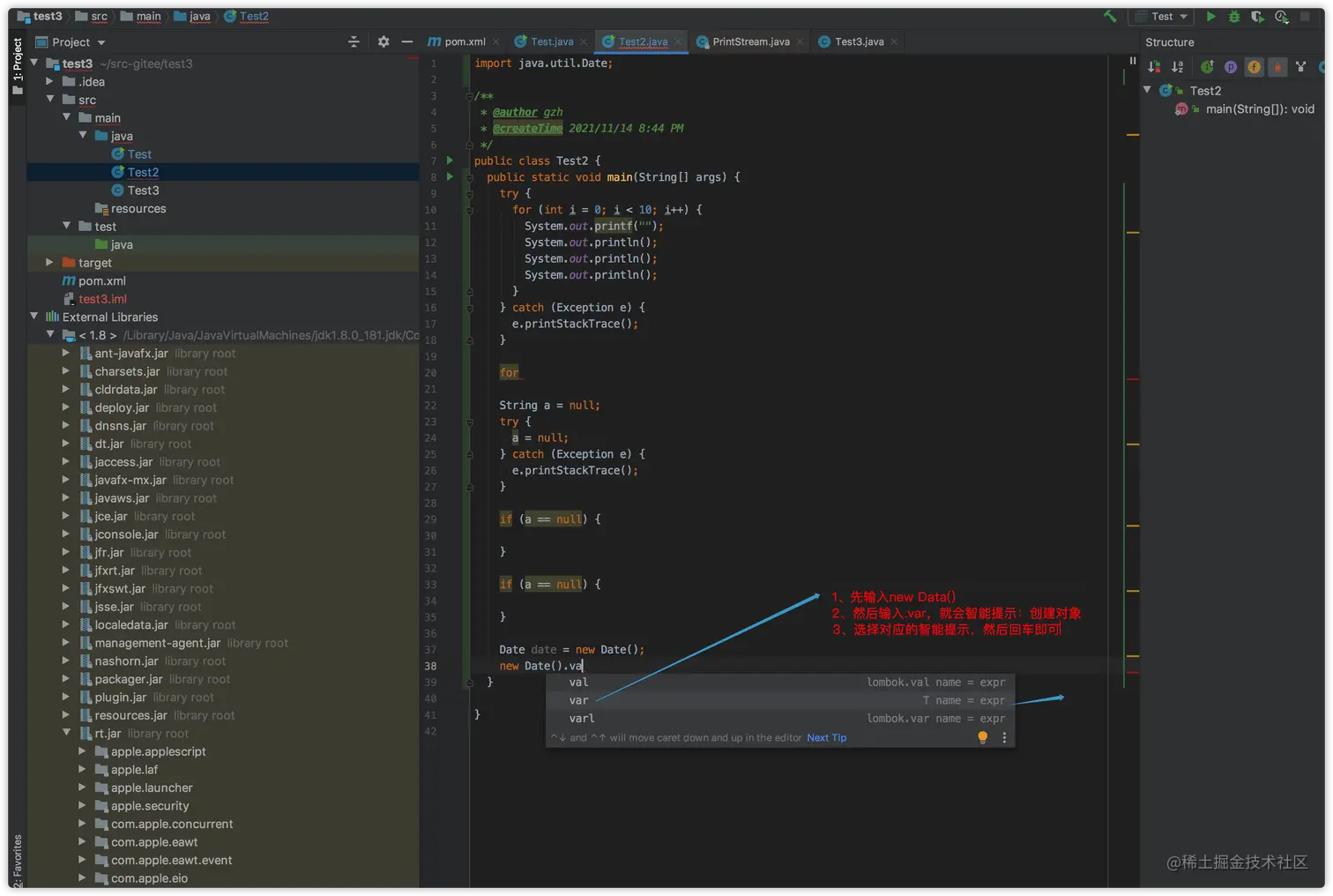 这种也是智能提示,只不过不是输入几个单词的首字母,而是输入.var这种方式来智能提示。