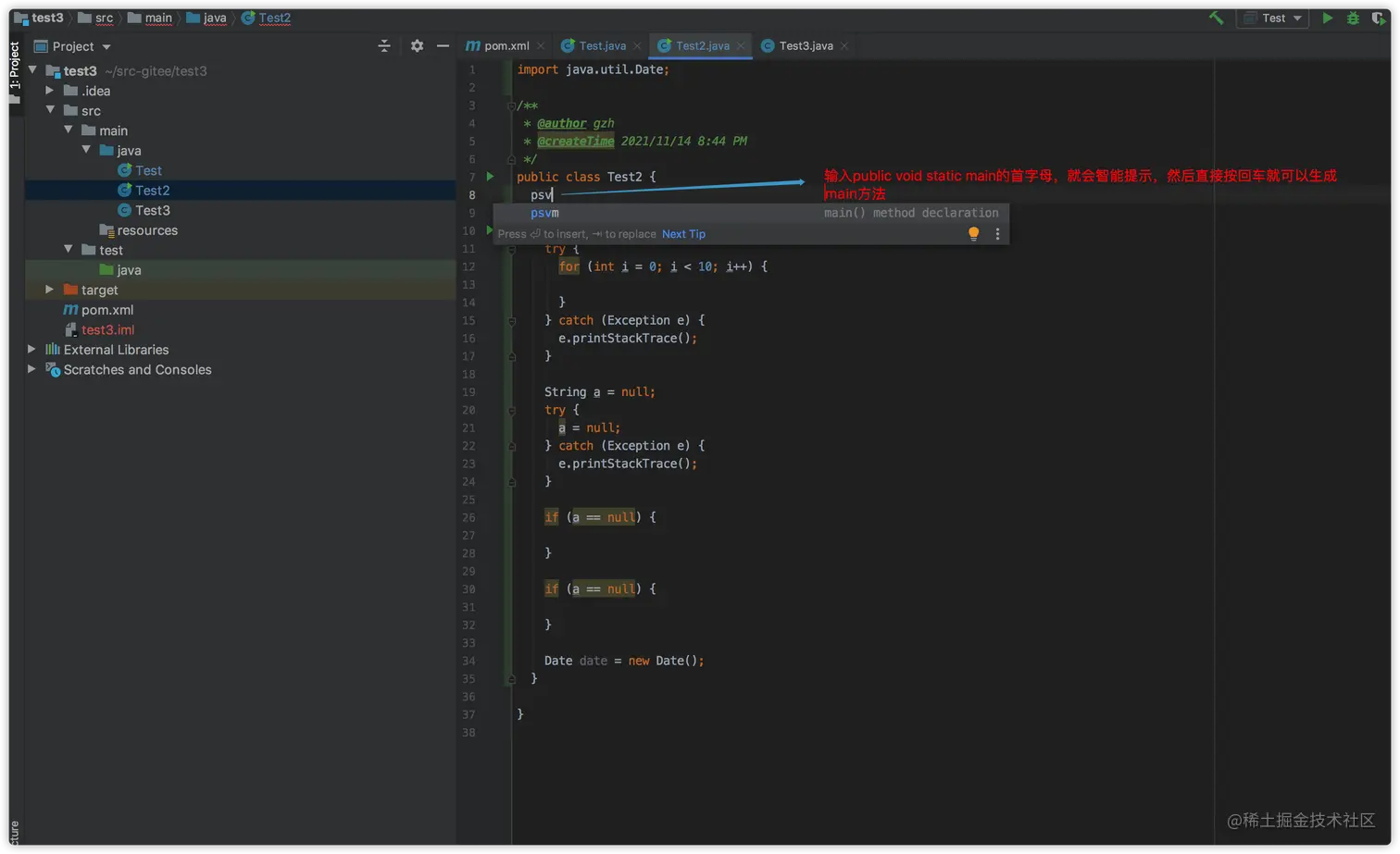 psvm是public void static main的首字母。