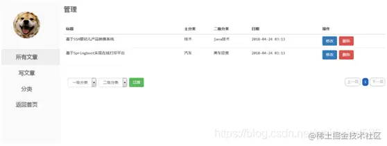 后端功能模块:博客分类管理、文章添加、修改、删除、查看等操作