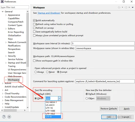 全局设置项目工程目录Workspace下所有工程编码统一为UTF-8;