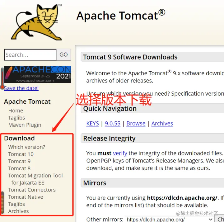 Tomcat官网下载Tomcat的安装包 tomcat.apache.org/download-90… ,