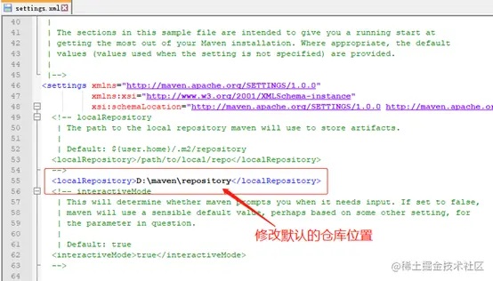 注意需要在settings.xml中修改本地仓库的位置为自己设定的仓库位置;