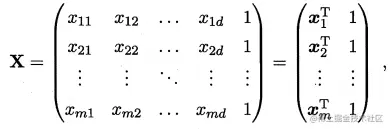 大小的矩阵X,其中每行对应一个示例,改行前d个元素对应于示例的d个属性值,最后一个元素恒置为1,即
