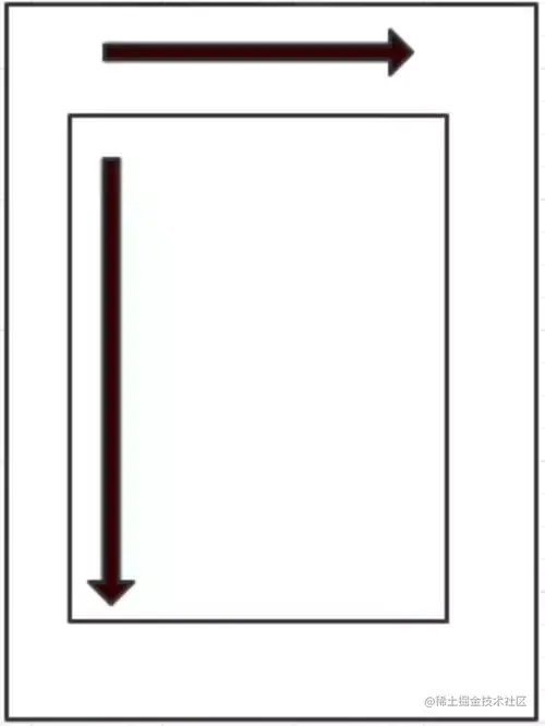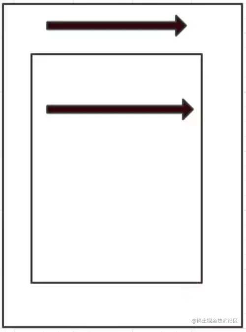 再看看第二种,这种情况下,因为内部和外部滑动方向一致,系统会分不清你要滑动哪个部分,所以会要么只有一层能滑动,要么两层一起滑动得很卡顿。图示如下: