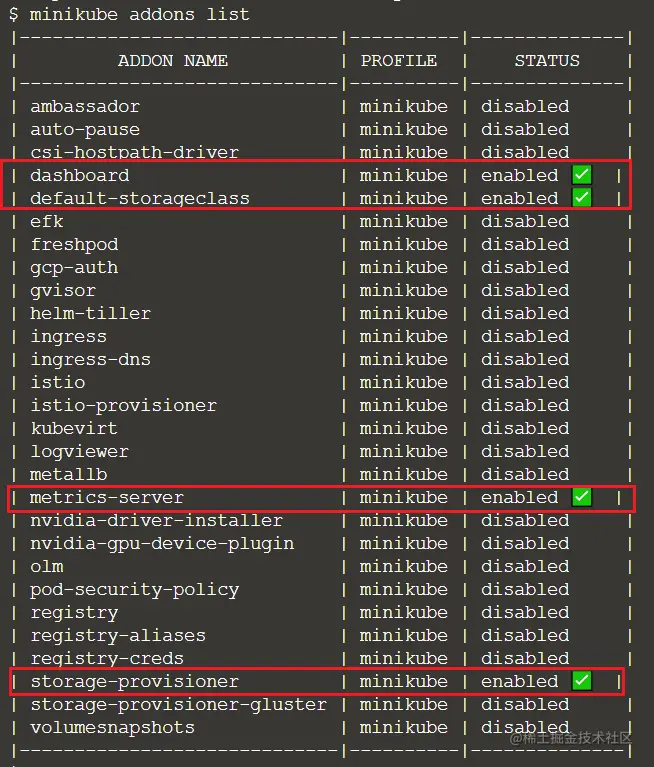minikube addons list
