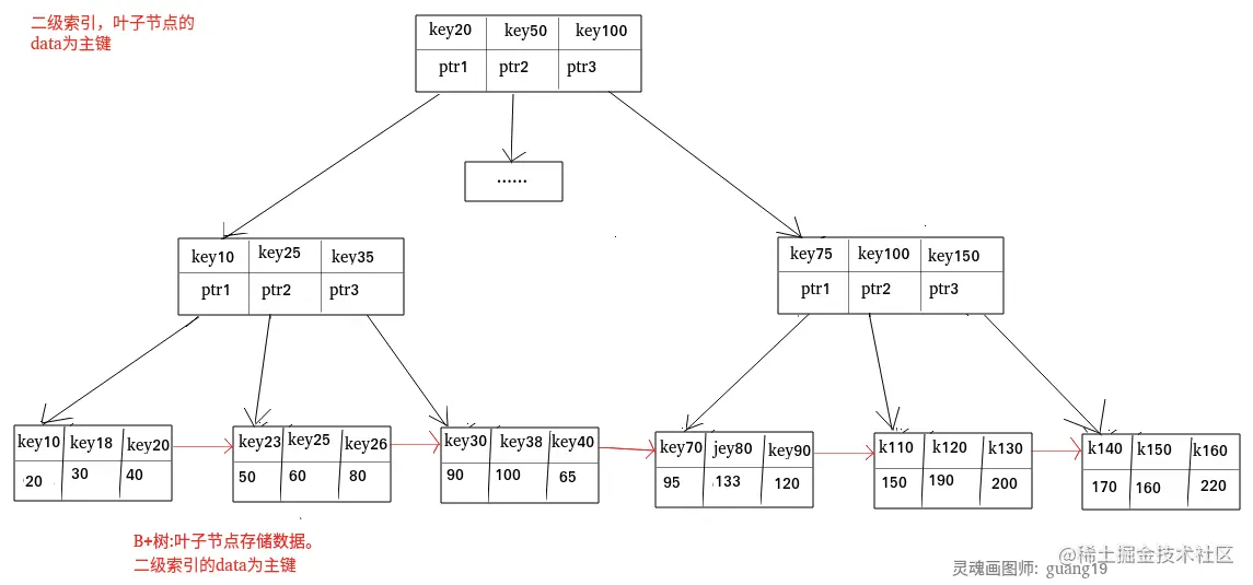 二级索引的叶子节点存储的数据是主键。就是说通过二级索引,可以定位主键的位置。