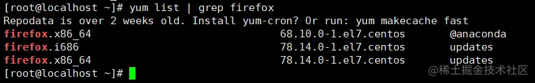 yum是一个 shell 前端软件包管理器。基于 RPM 包管理,能够从指定的服务器自动下载 RPM 包并且安装,可以自动处理依赖性关系,并且一次安装所有依赖的软件包,无须繁琐地一次次下载、安装。yum list | grep <xx软件列表>: 查询 yum 服务器是否有需要安装的软件yum list | grep firefox