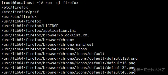 rpm -ql <软件包名>: 查询软件包中的文件rpm -ql firefox